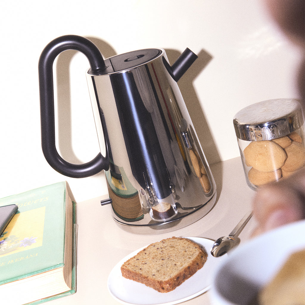 In Japanese, “toru” means “through.” This is why the term was chosen as the name of the new series conceived by Nendo for Alessi: the handles of the objects seem to pass through the main body that composes them, curving elegantly to trace an ideal single line that penetrates the steel volume and re-emerges as if continuing into the spout or a second handle. The functional need thus transforms into a refined and original design.The collection includes an electric kettle, a toaster, and a citrus juicer. The profile of each object is minimal and clean.