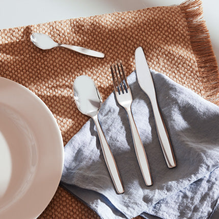 Soft, meticulous lines, combined with the utmost attention to formal detail. The shaped profiles of each piece of cutlery are the characteristic of the cutlery set Itsumo, an element that ensures a pleasant sensation both in gripping the objects and in contact with the lips.